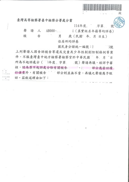 註:檢察官不起訴後,聲請再議發回重新調查 成功率極低,且需於收到不起訴處分後10日內聲 請再議,建議收到不起訴處分後應立即處理