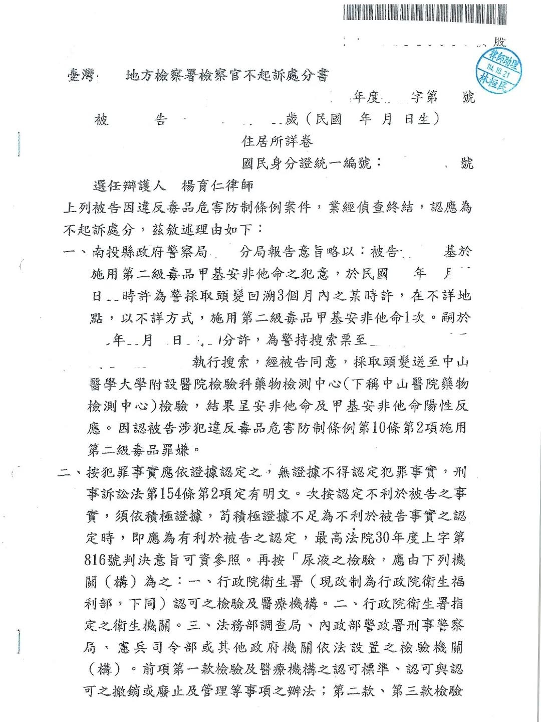 沒有使用毒品卻檢驗出陽性反應?不起訴案例分享